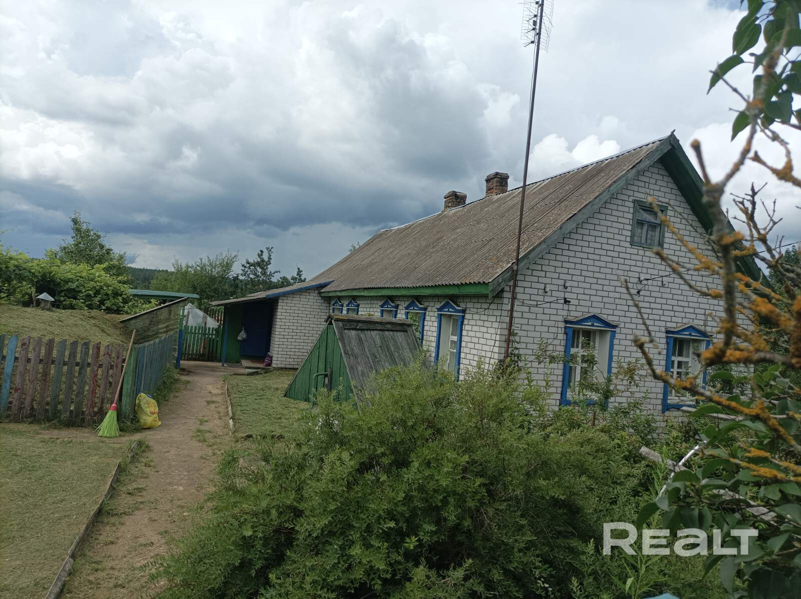 Дом находиться в пределах 100 км.от г.Минск, большая прилегающая территория,недалеко находится лес и речка . На территории имеются постройки типа сарай, погреб,беседка,навес под машинное место. Имеется колодец с механической подачей воды и баня внутри дома.