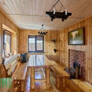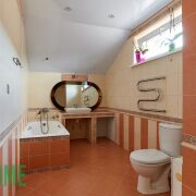 На кухне и в санузлах на полу плитка, установлен теплый пол. Дом строился для себя, использованы качественные, дорогие материалы. Стеклопакеты высокого качества во всем доме. Вся мебель и техника продается с домом.