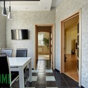 Дом просторный 220 кв.м., в тоже время жилое пространство организовано очень грамотно: 1-ый уровень предусмотрен для совместного времяпровождения (кухня, гостиная, просторная уборная), на 2-ом уровне расположены 3 уютные спальни и санузел). Есть и цокольный этаж, в котором разместилась бильярдная зона и пространство для тренажерного зала.