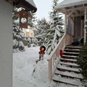 Участок ограждён высоким забором — можно наслаждаться видом и при этом чувствовать себя безопасно. На территории большая беседка с печью и садовой мебелью.