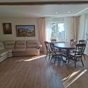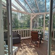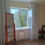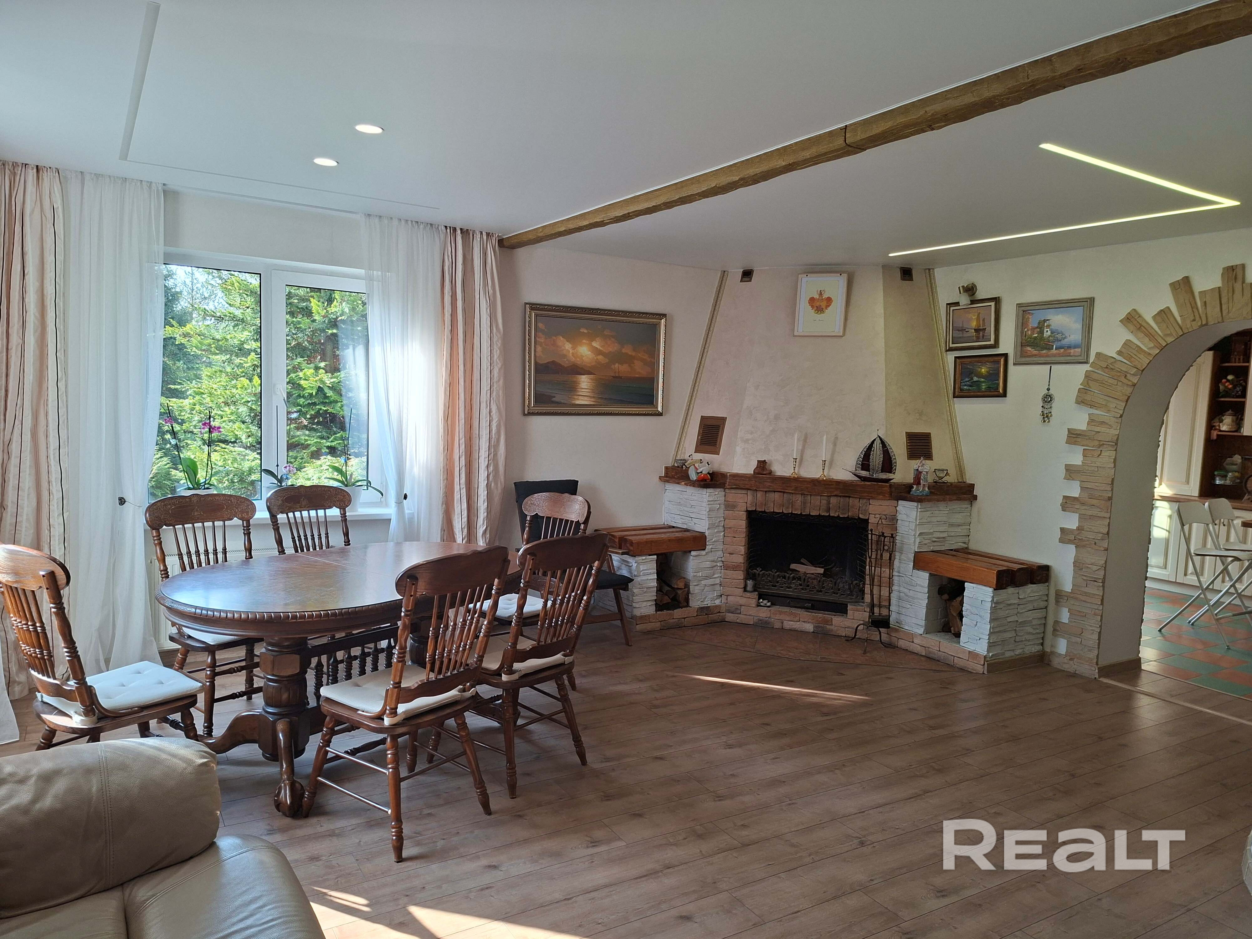 Просторная кухня-гостиная 50 м2 с панорамными окнами в кухне и выходом на террасу. Вид на свой сосновый лес. Симфония соловьев, скворцов гарантирована.