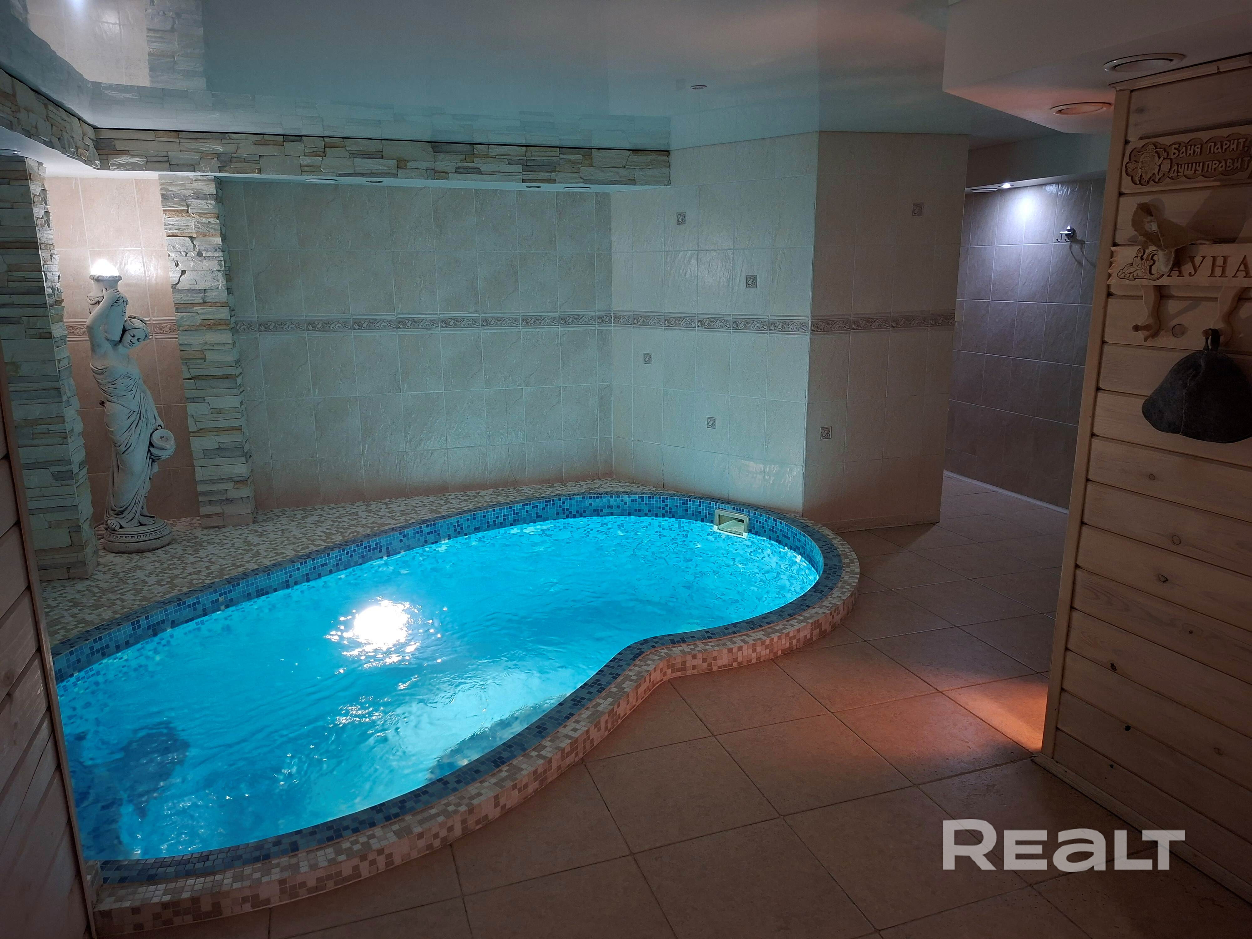 Спа комплекс с бассейном, сауной, зоной отдыха, санузлом около 60 м2 в цокольном этаже с теплыми полами.