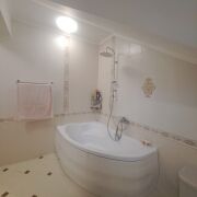 Полы выровнены (выполнена стяжка с армированием), сверху уложен ламинат, плитка. В тамбуре, кухне и 2х санузлах - электрические тёплые полы. Окна – 2х камерные стеклопакеты.