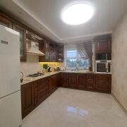 Кухня оборудована стильным гарнитуром из натурального дерева. Кухня со встроенной мебелью остается новым владельцам.