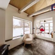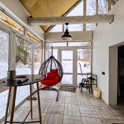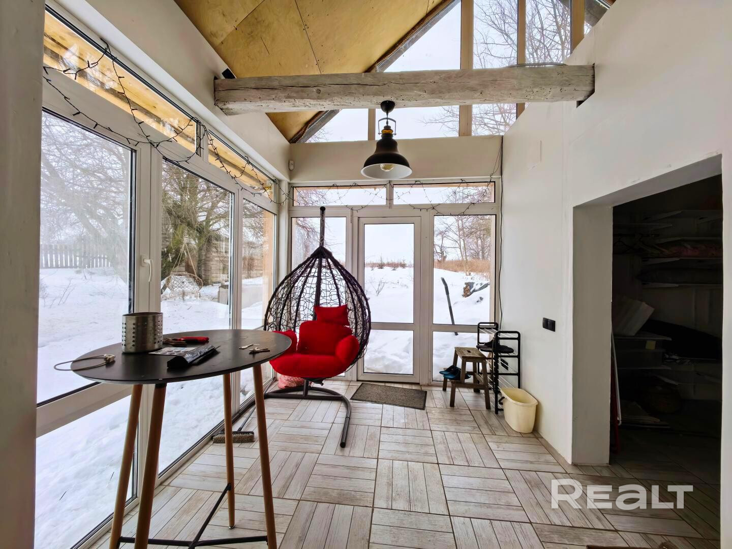 - Качественные панорамные окна и входная дверь ПВХ. Стены утеплены 50 мм изоляцией, а крыша обладает 150 мм утеплителя, что гарантирует отличную теплоизоляцию в любое время года. Новому хозяину останется сделать внешний фасад дома по своему вкусу.