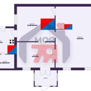 - Площадь дома 70,6 кв.м даёт достаточно пространства для повседневной жизни. Жилая зона 45,3 кв.м и кухня 7,4 кв.м создают понятную и удобную планировку.