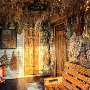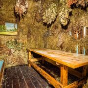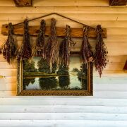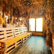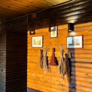 Банный чан на дровах с целебными травами и вениками для оздоровления и релаксации.
