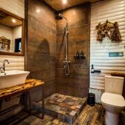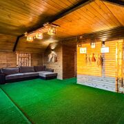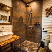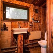 Баня по-черному «Тайга» с зоной отдыха, видом на реку, санузлом и прудом для контрастных процедур.