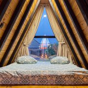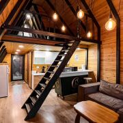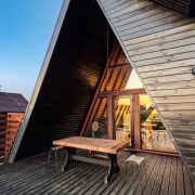А-фрейм — компактный двухэтажный дом для 4 человек с кухней, душевой, террасой с видом на реку Жучка. Отлично подходит для отдыха на природе вдали от города.