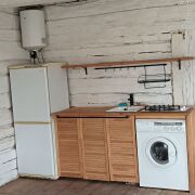 Дом в жилой деревне. В дом введена вода и стоит бойлер. Подключена стиральная машина. Отопление печное. Есть сарай, там были куры и козы. Оборудован загон для выгула. Туалет стоит почти новый. В доме есть кухня и всё что стоит остаётся новым владельцам. Рядом дружелюбные соседи. С Минска ходят маршрутки и приезжает автолавка. В 8км от деревни большое озеро Лоша для купания и ловли рыбы. В 5км аг. Хотляны, где есть вся инфраструктура. Рядом с деревней есть заправка и Сто. Удобный съезд с трассы.