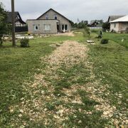 Участок: 11 соток, выровнен, молодые саженцы. Заезд комбинированный: один подъезд грунтовка (для спокойствия), второй — асфальт (для ума).