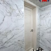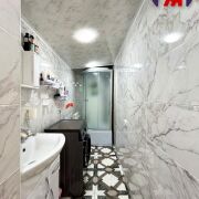- Раздельный санузел облицован плиткой, установлена душевая кабина.
