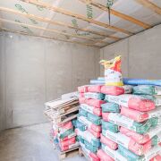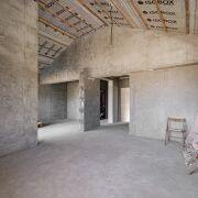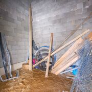 Фундамент – установлено 57 бетонных свай (2 м), залита лента, всё засыпано песком и сверху залита монолитная плита толщиной 15 см.
