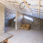Крыша – балки 25 см, металлочерепица, утепление - 20 см каменная вата, покрыта пароизоляцией.