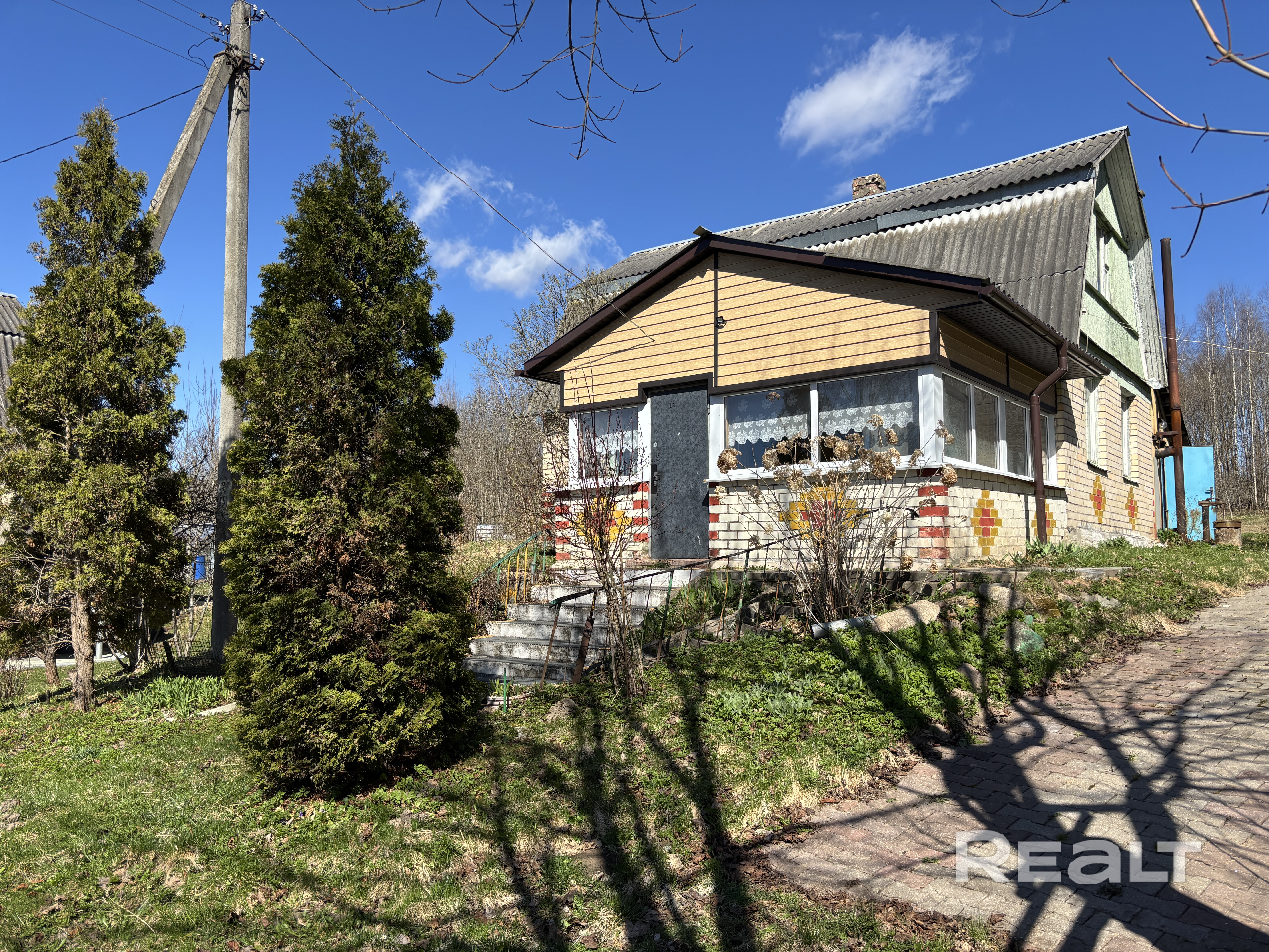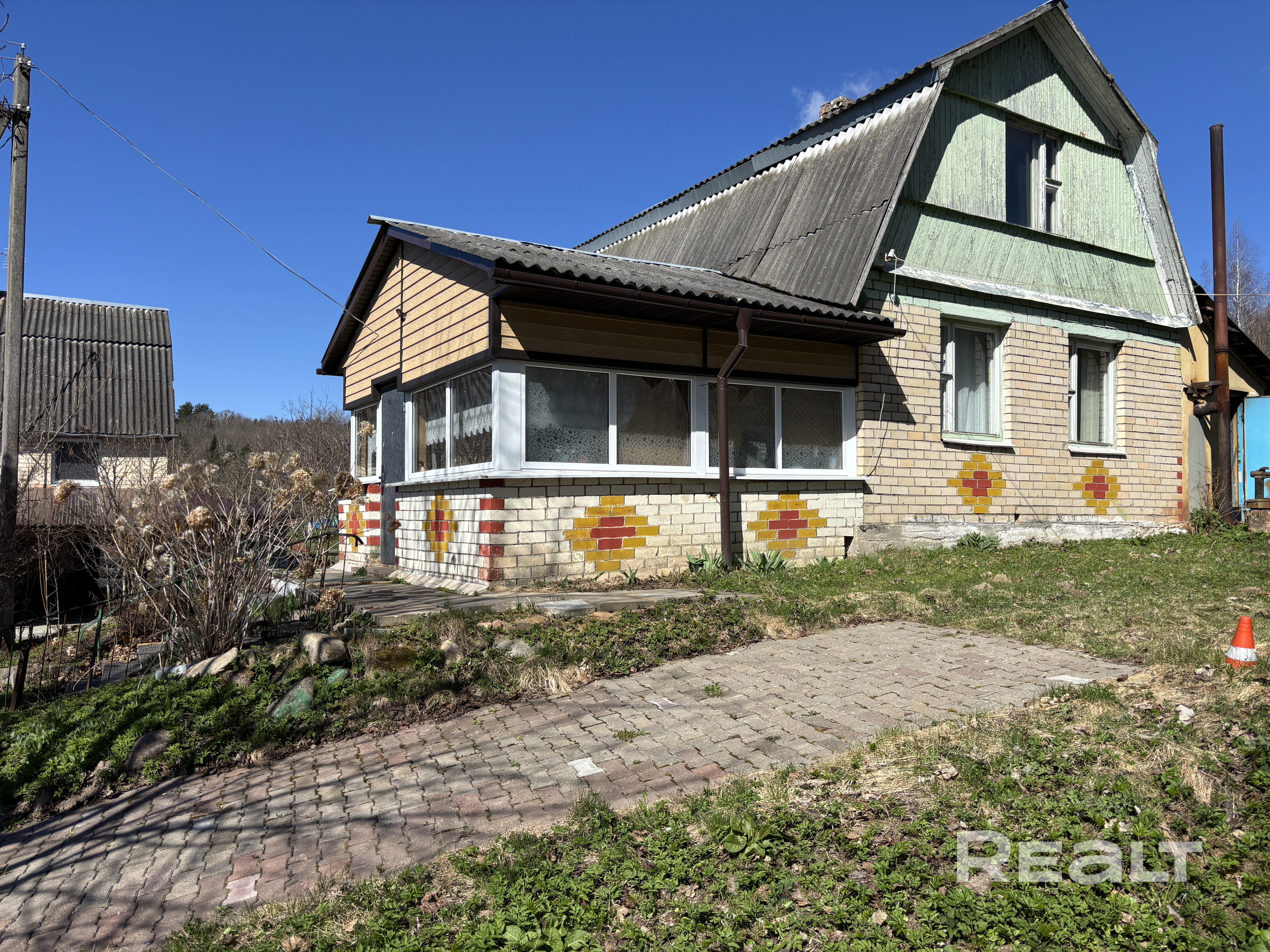 -Двухэтажный блочный дом обложен кирпичом. Второй мансардный этаж можно зонировать на две раздельные комнаты. Есть мастерская и погреб.