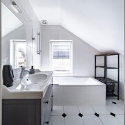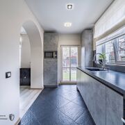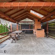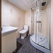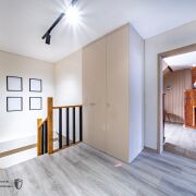Кухня полностью укомплектована современной техникой: посудомоечная машина, холодильник, духовой шкаф, микроволновка и комбинированная варочная панель (газ + индукция). Тёплые полы проложены в санузлах, на кухне и в гостевой комнате. Отопление комбинированное: надёжный твердотопливный котёл Buderus с буферной ёмкостью + электрический контур. Дом полностью автономен: собственная скважина, автономная канализация.