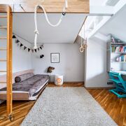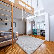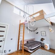 • 2 этаж: уютная спальня и двусветная детская с полноценным вторым уровнем (под спальное место или игровую зону), санузел.