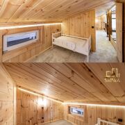 . Отопление электрическое установлен электрокотёл, сделаны теплые стены, так же в каждом доме установлены печь камин.