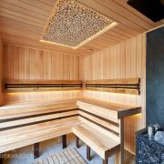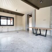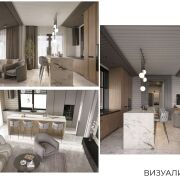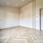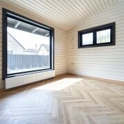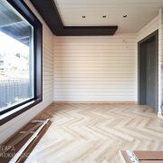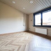 Дом возведен из качественных, надежных и безопасных строительных материалов как снаружи, так и внутри. Фундамент - монолитная плита (толщина 60 см - бетон 40 см, наверх утеплитель 10 см , 7 см стяжка + 2 см чистовая). Материал стен – клееный брус, древесина (сосна). Толщина внешних стен 29 см (внутри заполнена 15 см эковата), хорошо держит тепло, летом комфортный микроклимат. Фальцевая кровля, утеплена: эковата 25 см с перекрёстным утеплением. Установлены деревянные стеклопакеты, что дает дому дополнительную хорошую звуко и теплоизоляцию. Большие окна позволяют наслаждаться потрясающим видом и даёт больше солнечного света в доме. Отопление – газовый котел. Напольное покрытие в доме комбинированное, в комнатах на полу уложена паркетная доска, в кухне-гостиной и санузлах — керамогранит. В жилых комнатах установлены радиаторы отопления, остальная часть дома - теплый пол. Высота потолков в жилых комнатах - 2.7 м, коридор и кухня-гостиная - 3.74 м. Двери комбинированные, фрезерованные - покрытые эмалью. Канализация – септик. С одной стороны дома ливневка собрана в собственный люк. С другой стороны, канализация выведена на улицу в общую ливневку. Водоснабжение – центральное. Подсветка по периметру дома.