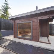 Участок в 8 соток облагорожен, на территории воплощён в жизнь ландшафтный дизайн-проект. Возведена баня, терраса и организовано место для автомобилей. Участок, огороженный забором с автоматическими откатными воротами. Также имеется зона барбекю, место для купели и помещение для садового инвентаря.