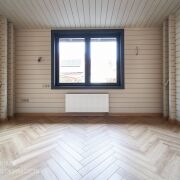 Дом возведен из качественных, надежных и безопасных строительных материалов как снаружи, так и внутри. Фундамент - монолитная плита (толщина 60 см - бетон 40 см, наверх утеплитель 10 см , 7 см стяжка + 2 см чистовая). Материал стен – клееный брус, древесина (сосна). Толщина внешних стен 29 см (внутри заполнена 15 см эковата), хорошо держит тепло, летом комфортный микроклимат. Фальцевая кровля, утеплена: эковата 25 см с перекрёстным утеплением. Установлены деревянные стеклопакеты, что дает дому дополнительную хорошую звуко и теплоизоляцию. Большие окна позволяют наслаждаться потрясающим видом и даёт больше солнечного света в доме. Отопление – газовый котел. Напольное покрытие в доме комбинированное, в комнатах на полу уложена паркетная доска, в кухне-гостиной и санузлах — керамогранит. В жилых комнатах установлены радиаторы отопления, остальная часть дома - теплый пол. Высота потолков в жилых комнатах - 2.7 м, коридор и кухня-гостиная - 3.74 м. Двери комбинированные, фрезерованные - покрытые эмалью. Канализация – септик. С одной стороны дома ливневка собрана в собственный люк. С другой стороны, канализация выведена на улицу в общую ливневку. Водоснабжение – центральное. Подсветка по периметру дома.