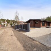 Участок в 8 соток облагорожен, на территории воплощён в жизнь ландшафтный дизайн-проект. Возведена баня, терраса и организовано место для автомобилей. Участок, огороженный забором с автоматическими откатными воротами. Также имеется зона барбекю, место для купели и помещение для садового инвентаря.