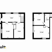 Две комнаты на втором этаже (13.8м2 и 9.1м2) и чердачное помещение.