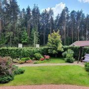 Участок полностью благоустроен и ухожен. Взрослые декоративные деревья (туи, можжевельники, декоративные растения и два плодоносящих дерева Лещины(фундук). Капитальная беседка с барбекю , красивый большой стол из камня, дубовая мебель.