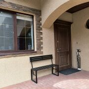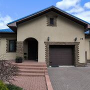 Дом снаружи покрыт камешковой мраморной штукатуркой с элементами декоративного камня(очень долговечное решение).