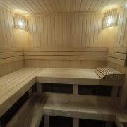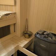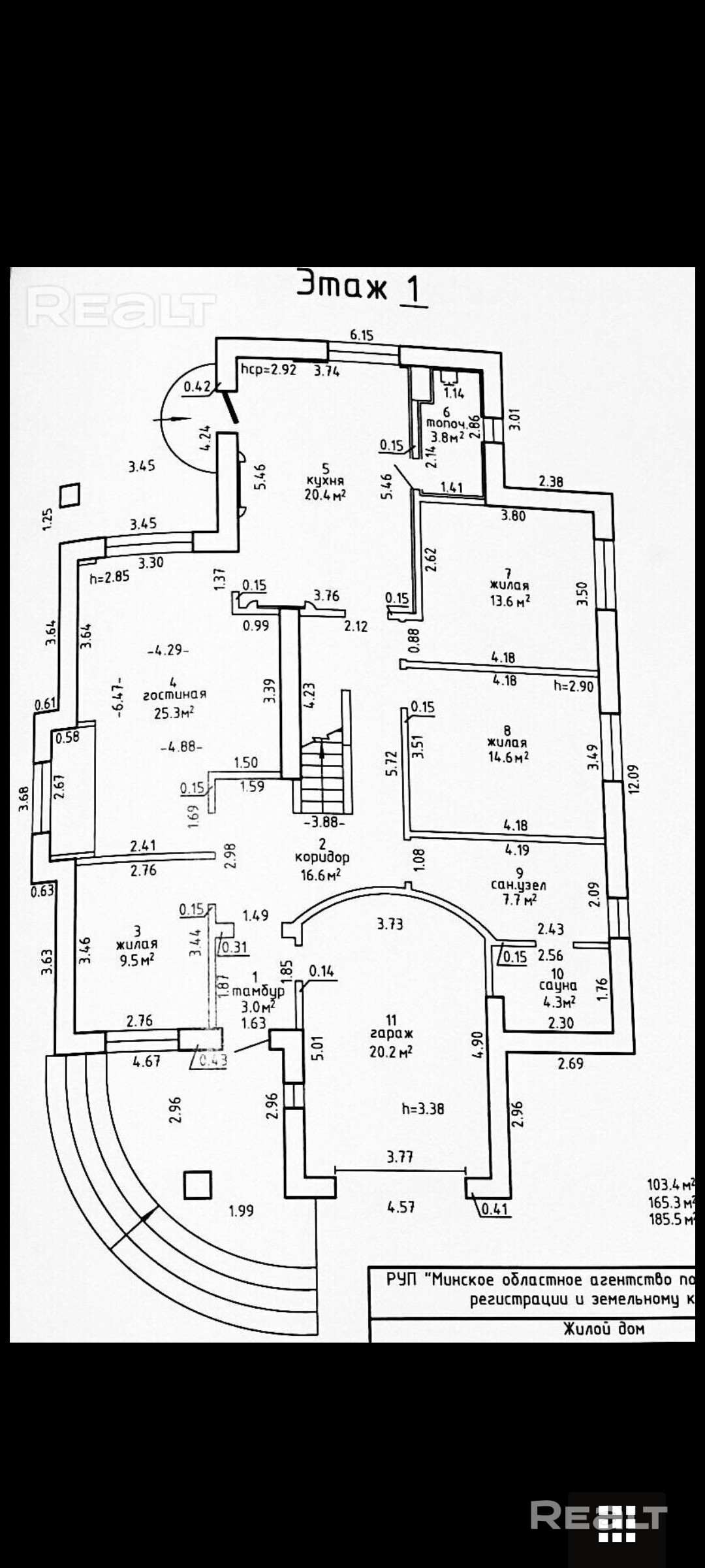 1-й этаж- 3 спальни (14,6+13,6+9,5м2) и гостиная (25,3м2), кухня-столовая (20,4м2), санузел с душевой кабиной (7,7м2) и небольшой сауной (4,3м2),