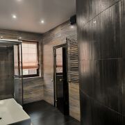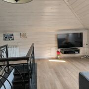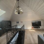 2-й этаж(мансардный) - кабинет с ТВ (27,3 м2), санузел с ванной (3,2 м2) и отдельная гардеробная (13,1 м2). Множество мест хранения для одежды и вещей.