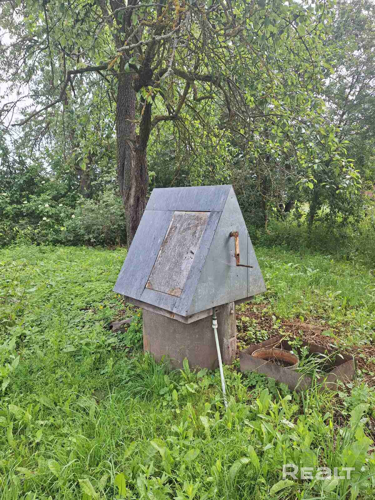 Дом шлако-бетонный, прочный. Внутри все хорошо. К колодцу подведено электричество для удобного подключения насоса. Летом для полива наполняется ванна. 2 бочки для сжигания мусора. 5 лет назад к дому пристроили помещение 4х4м с окном и хорошим погребом (стенки забетонированы). Можно отгородить комнату-мастерскую. Есть г/с блоки и шифер. В доме 2 комнаты и отгороженная часть с печкой. Русская печь и плита хорошо обогревают дом. Газовая плита и баллон. Холодильник, телевизор, простая мебель.