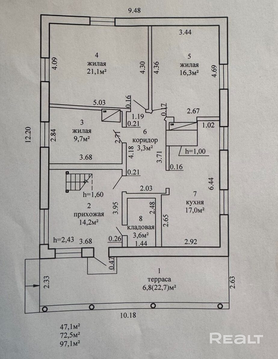 • Площадь общая