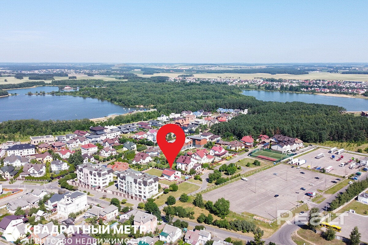Локация: Минск, пешая доступность до Цнянского водохранилища (экология и зона отдыха рядом). Асфальтированный подъезд, перед участком — большая зеленая площадка с газоном.