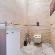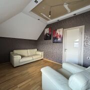 В доме - всё коммуникации центральные, для отопления - газовый котел. На первом этаже - все готово под чистовую отделку, а на втором - практически все сделано.