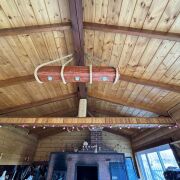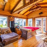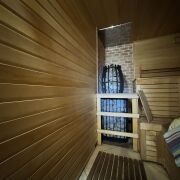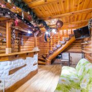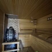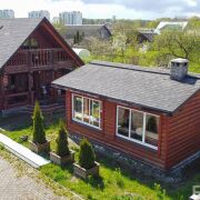 На ровном и огороженном со всех сторон участке находятся: необычная и многофункциональная двухэтажная дом-баня, летний дом с печью-камином и гараж-навес с двумя помещениями.