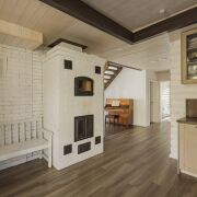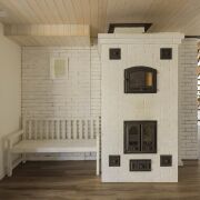 Отопление: комплексная система воздушного отопления с вентиляцией, кондиционированием и очисткой воздуха. Солнечные батареи. Кирпичная печь и камин на первом этаже, чугунная печь на втором этаже;