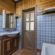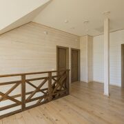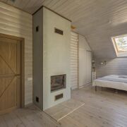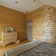 На второй этаж ведет лестница с удобным маршем. Холл, система хранения, три спальни и стильный санузел с ванной. Из двух спален есть выход на балкон. В одной из спален камин.