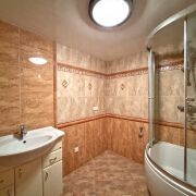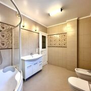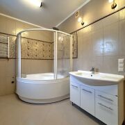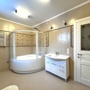 - вся плитка производство Испания, сантехника (Чехия, Германия), радиаторы - Италия, двери межкомнатные МДФ, светильники - Италия, полы - паркетная доска и кафель (подогрев водяной), обои производство Германия, смесители - Германия, подоконники - мрамор, лестница облицована плиткой, кровать производство Малайзия (ковка + матрас VEGAS), трюмо, теннисный стол.