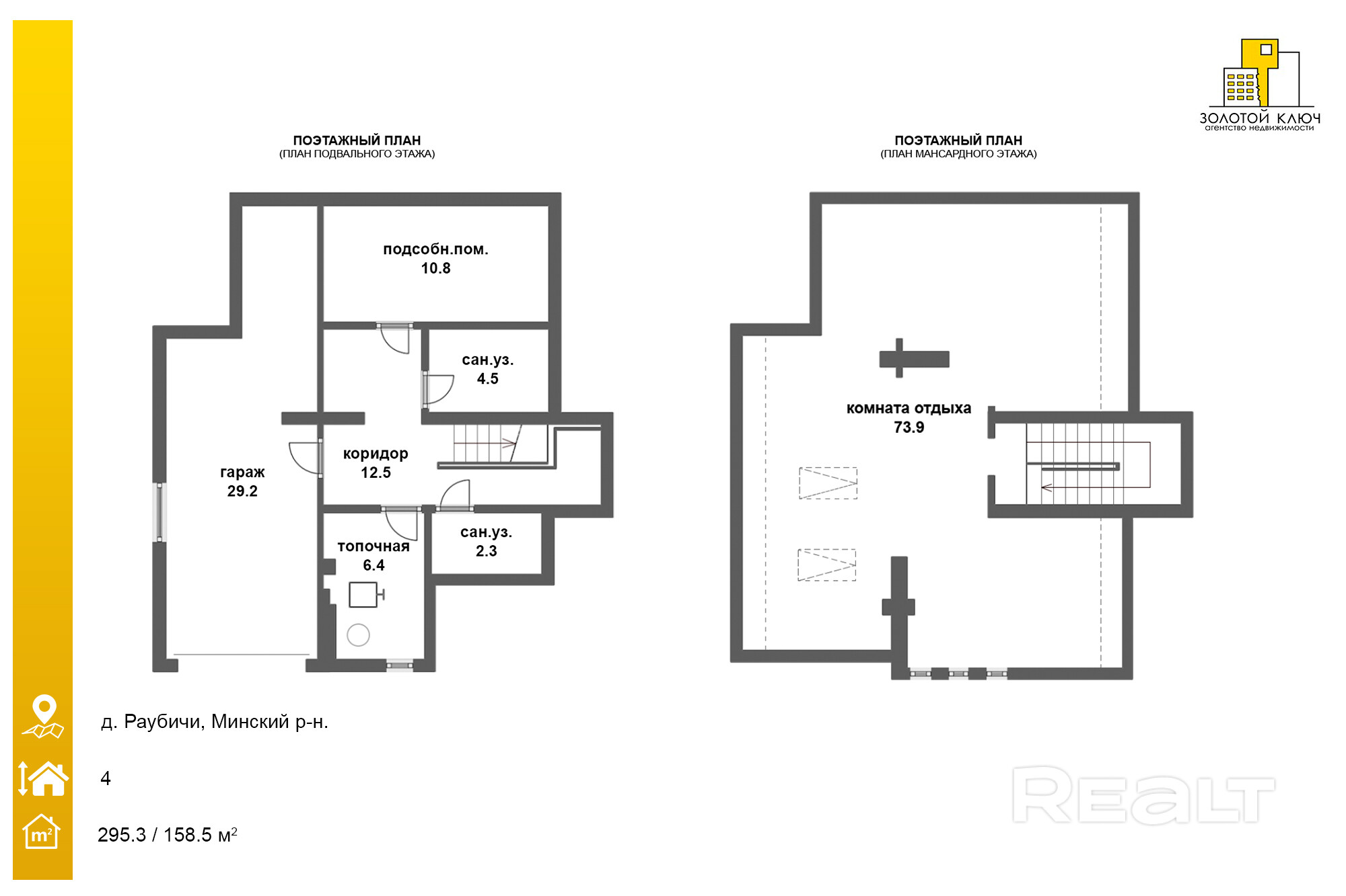Площадь дома 295.3/ 158.5 /18.5 кв.м.