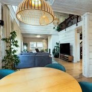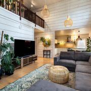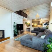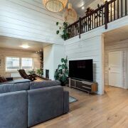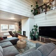 -Камин создаёт атмосферу уюта и тепла, становясь центральным элементом интерьера. Кондиционер обеспечивает комфорт в жаркие летние дни.