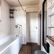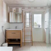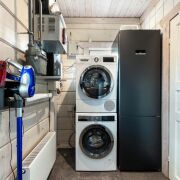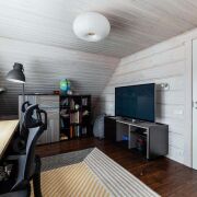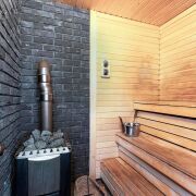 -Прачечная оборудована стиральной и сушильной машинами Bosch. На первом этаже находится спальня, ванная комната. Уникальным элементом является баня на дровах — традиционный русский комфорт, место для расслабления и оздоровления. Котельная‑прачечная — все технические системы организованы в одном месте.