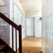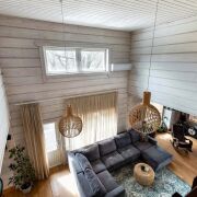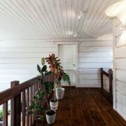 -Дом спроектирован финскими архитекторами и построен из финского клееного бруса премиального качества толщиной 200 мм. Клееный брус — материал, признанный во всём мире как один из лучших для строительства домов. Финский брус обеспечивает идеальную теплоизоляцию, герметичность, долговечность и экологичность.
