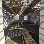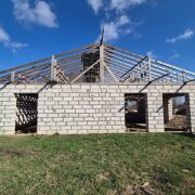 - Кровля: Крыша перекрыта шифером. Это практичное решение, обеспечивающее надежную защиту дома на этапе завершения строительства.
