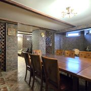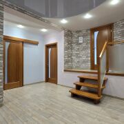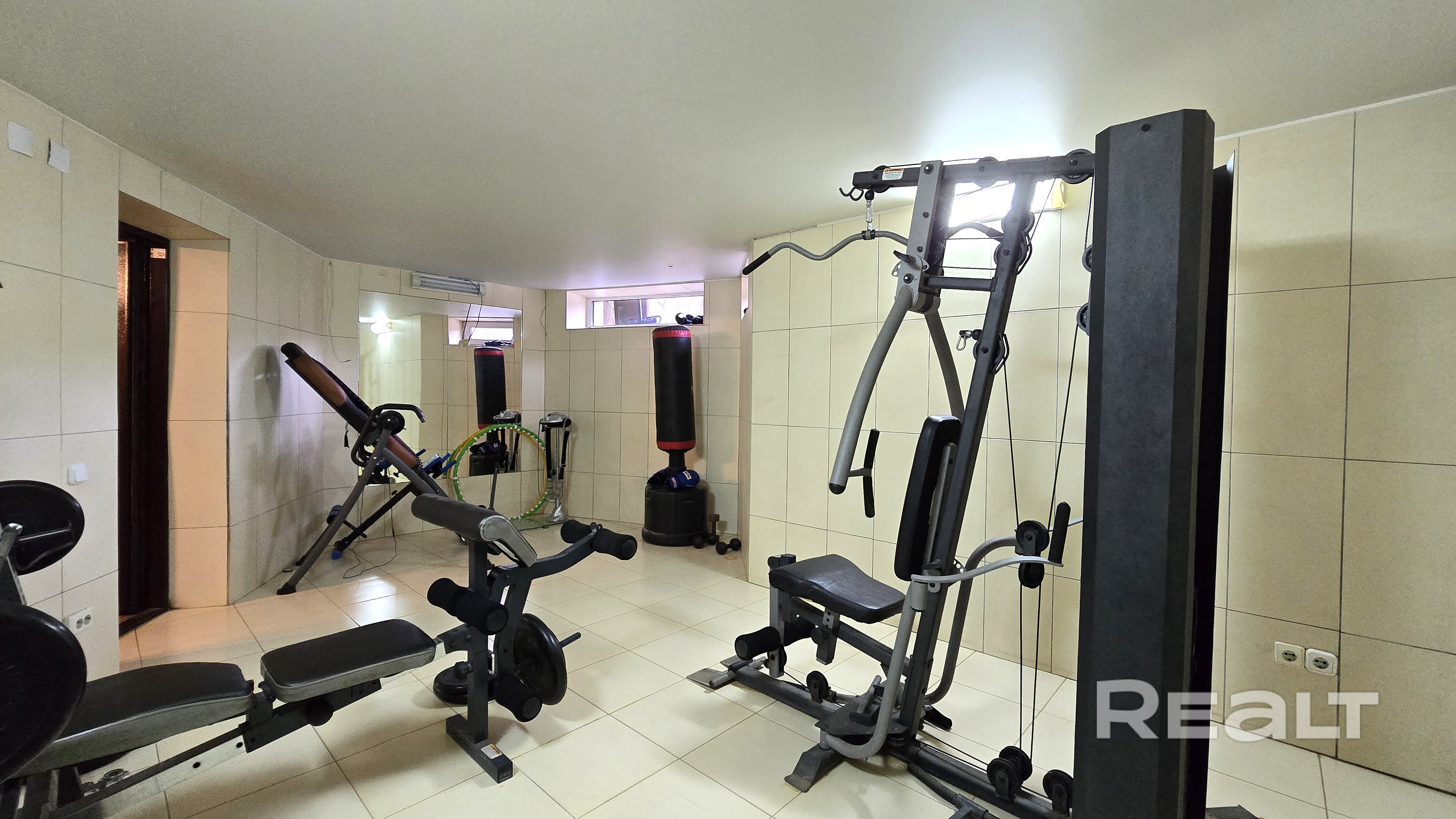 -- Цоколь – комната отдыха (53 м2), тренажёрный зал (20,4 м2), топочная, прачечная.