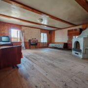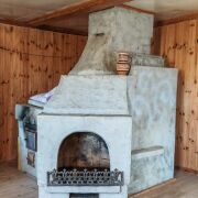 Сердце дома — уютный кирпичный камин, который не только согреет в холодные дни, но и создаст неповторимую атмосферу уюта. В интерьере использованы натуральные материалы: преобладают дерево и кирпич, что придаёт дому тепло и экологичность. Деревянные балки на потолке и дощатые полы добавляют особый шарм и колорит.