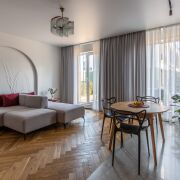 Интерьер таунхауса выглядит стильно, современно и очень уютно, при этом он отличается удобством и продуманной организацией пространства. Зонирование выполнено с максимальной эффективностью, а для ремонта использовались только качественные и экологически чистые материалы.
