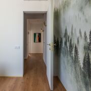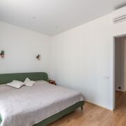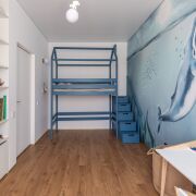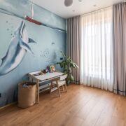 Испанская плитка в ванне и санузле. Бесшовные и экологичные обои в спальне и детской. Встроенная гардеробная с окном во взрослой спальне.