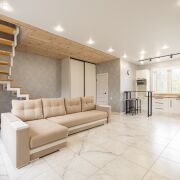 первый этаж: просторная гостиная с кухней — идеальное место для семейных ужинов и приёма гостей;