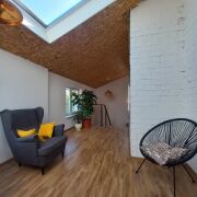 Коттедж в 3 уровнях, из красного кирпича, утеплен и оштукатурен. Крыша - ондулин и металлопрофиль, отопление на газу, есть 2 камина, центральный водопровод, местная канализация. Первый этаж под чистовую отделку, второй полностью готов к проживанию.